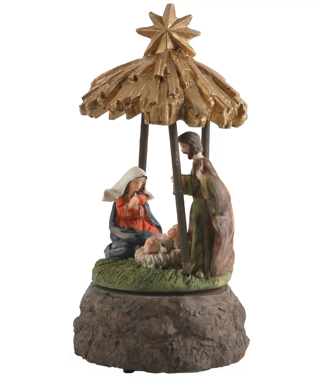Otáčející se a hrající barevný betlém vysoký 21 cm.