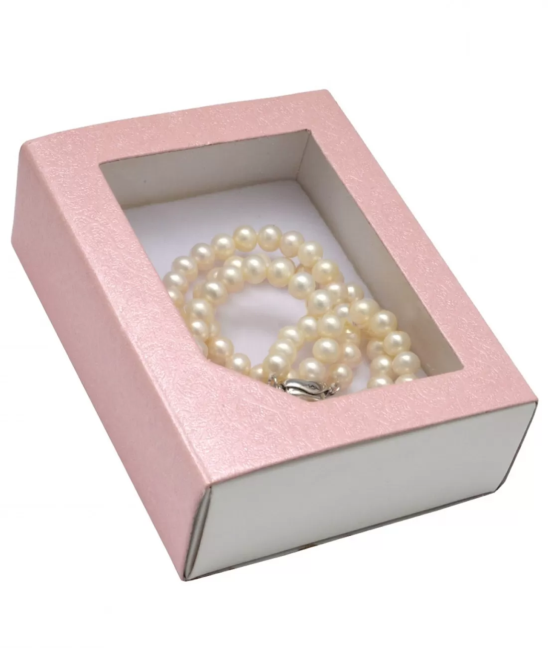 Krabička na šperky papírová růžová s průhledem