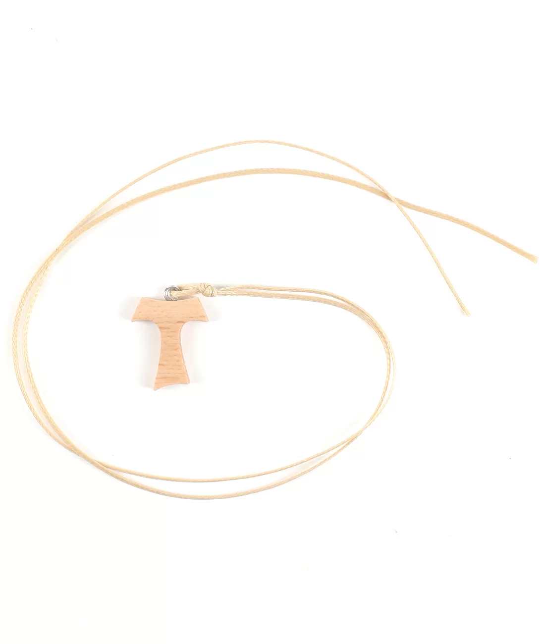Dřevěný křížek ze světlého dřeva na kožené šňůrce. Na celém světě je dnes kříž ve znamení písmene Tau znamením františkánství. Pro františkánskou rodinu je Tau dědictvím získaným přímo od sv. Františka. Být označen Tau znamená touhu obrátit se a chtít se připodobnit Kristu.