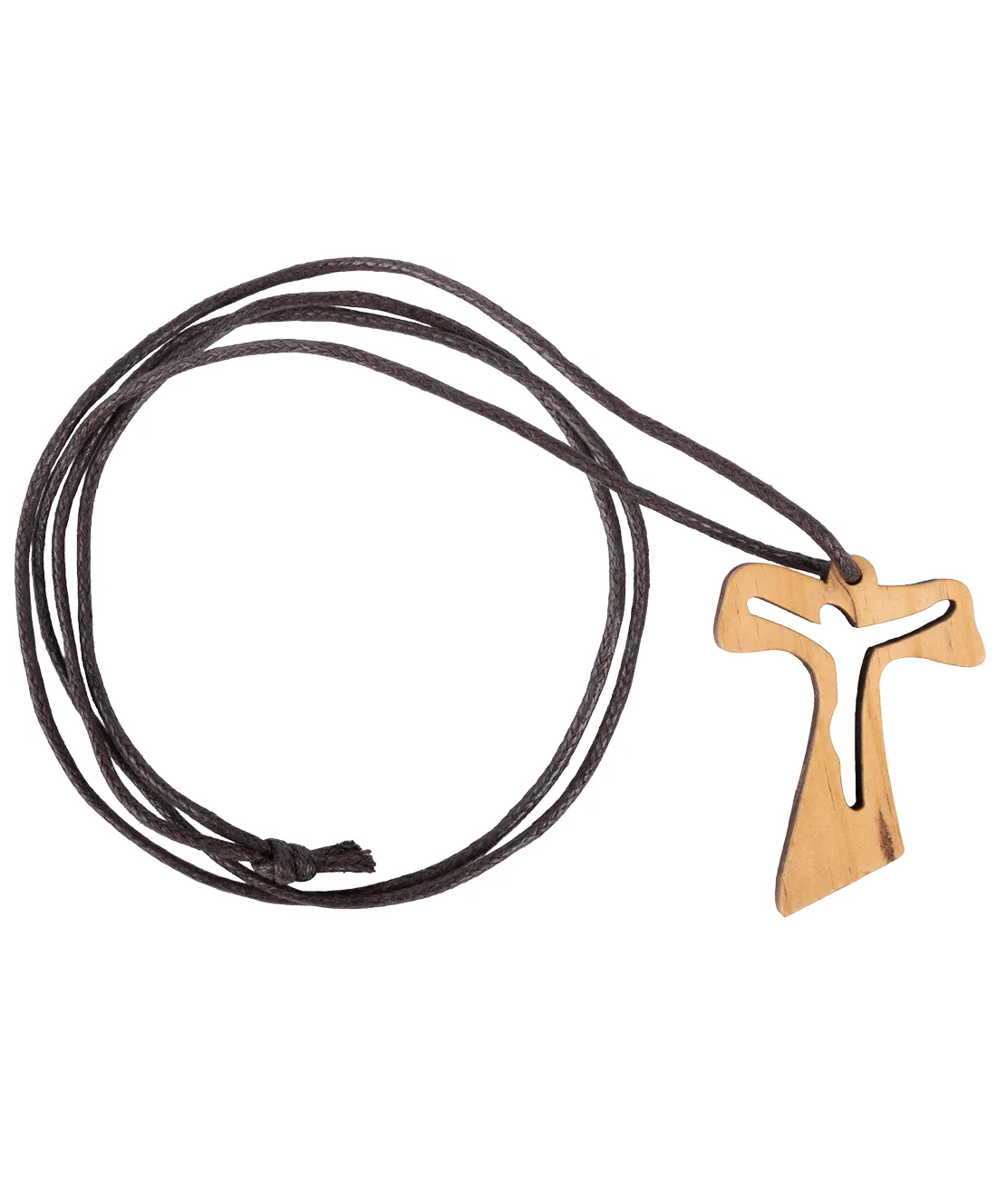 Dřevěný křížek ze světlého olivového dřeva s výřezem ukřižovaného Krista, na kožené šňůrce. Na celém světě je dnes kříž ve znamení písmene Tau znamením františkánství. Pro františkánskou rodinu je Tau dědictvím získaným přímo od sv. Františka. Být označen Tau znamená touhu obrátit se a chtít se připodobnit Kristu.