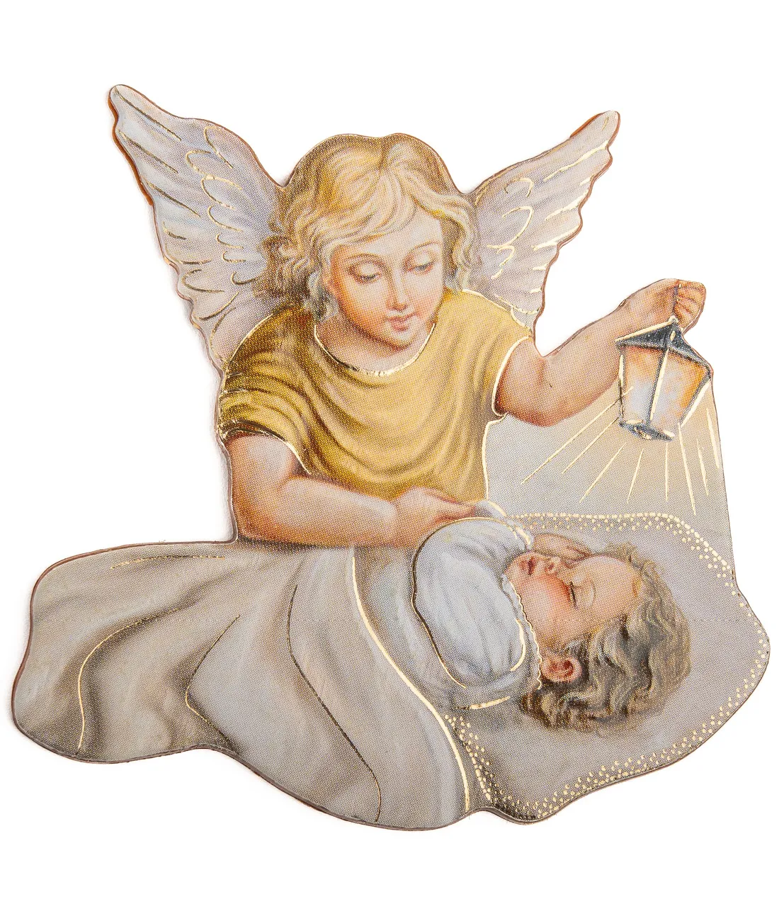 Dřevěná magnetka Anděla Strážného o velikosti 6,5 cm. Od svého počátku až k hodině smrti je lidský život obklopen ochranou andělů a jejich přímluvami. Každý věřící má u sebe anděla jako ochránce a pastýře, na kterého by neměl zapomínat.
