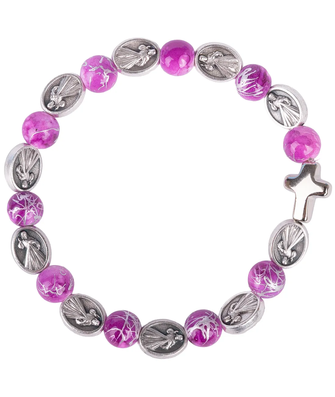 Náramek desátek Boží Milosrdenství - korálek růžový žíhaný
