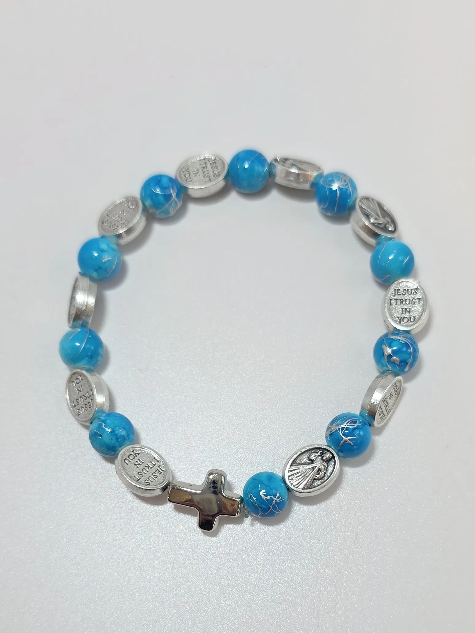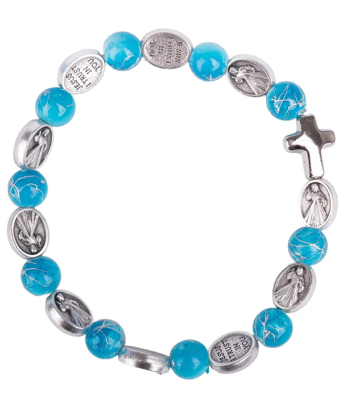 Náramek desátek Boží Milosrdenství - korálek tyrkysový žíhaný