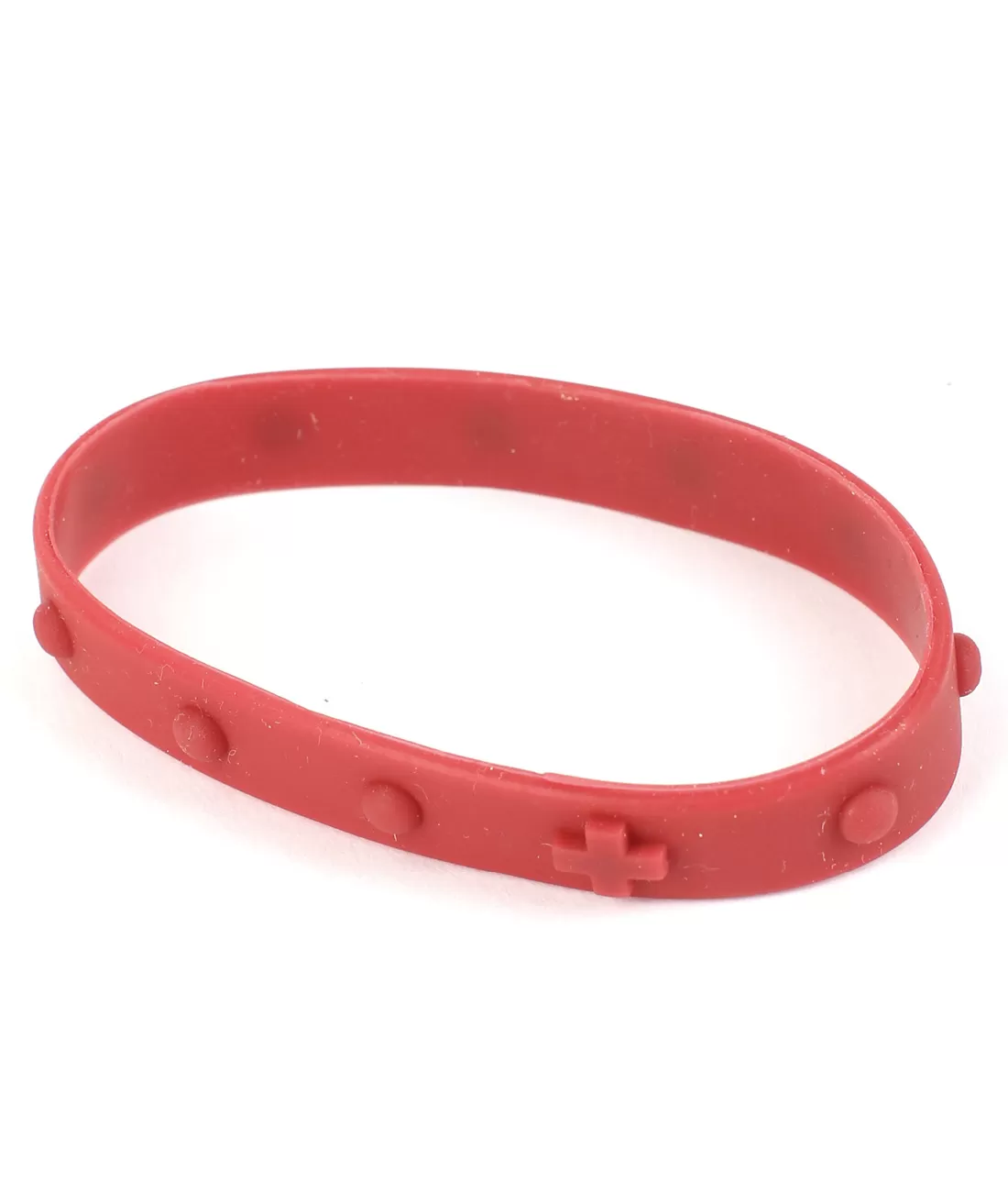 Praktický růženec desátek jako pružný silikonový náramek. Barva vínová.