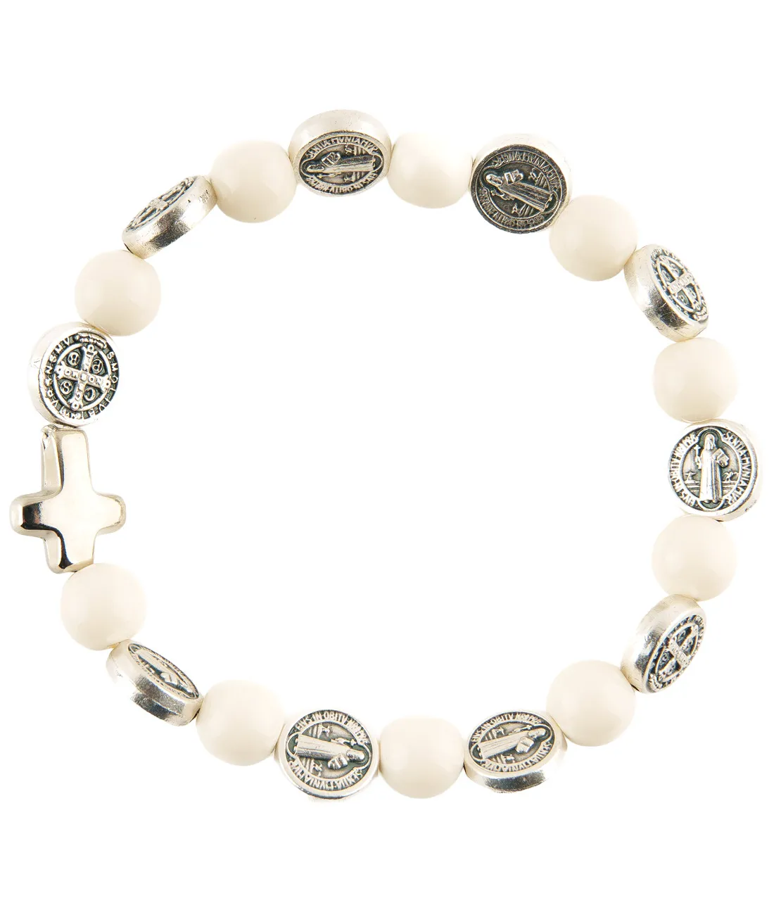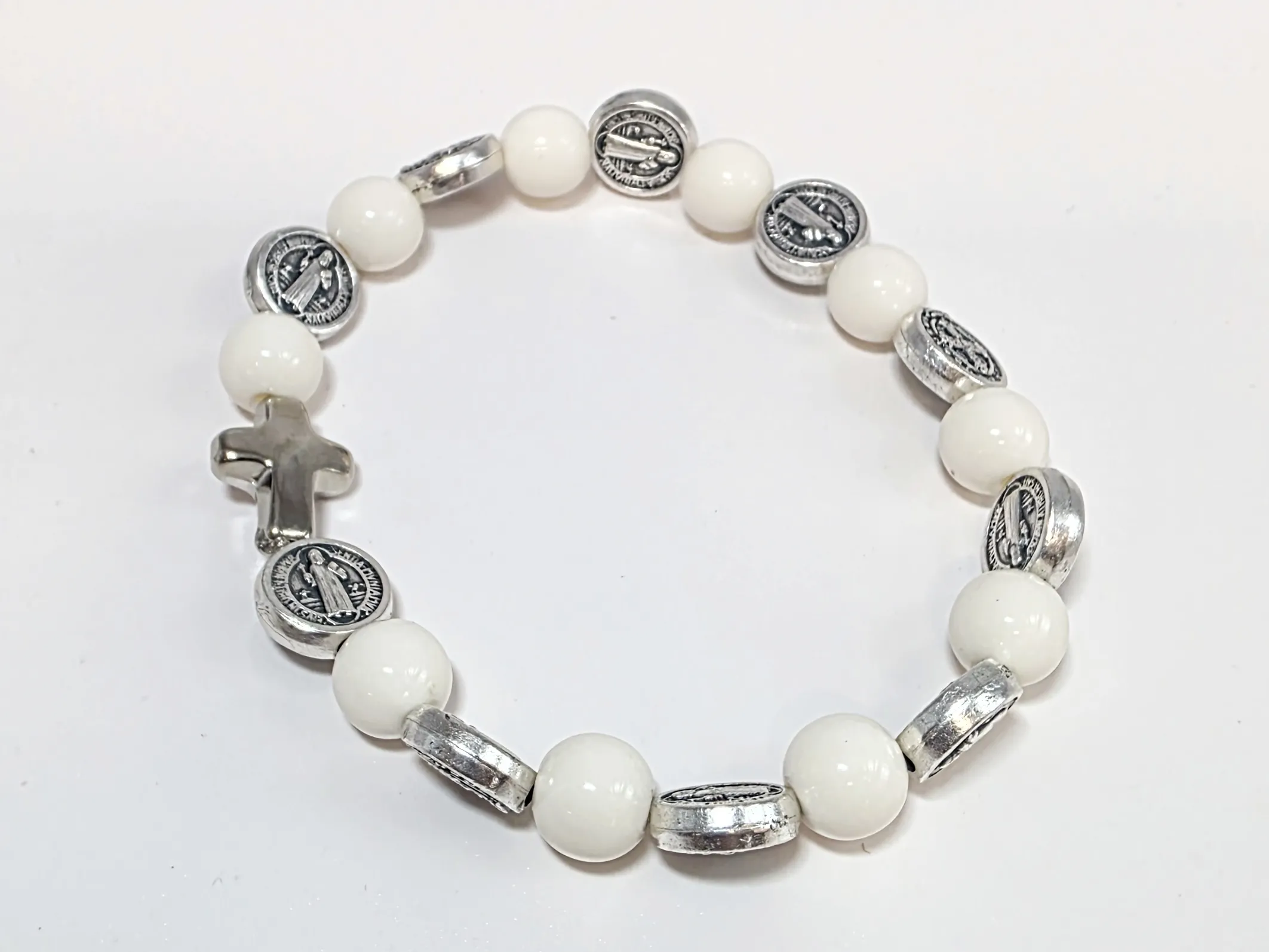 Růženec desátek jako náramek se stříbrnými medailemi sv. otce Benedikta. .
