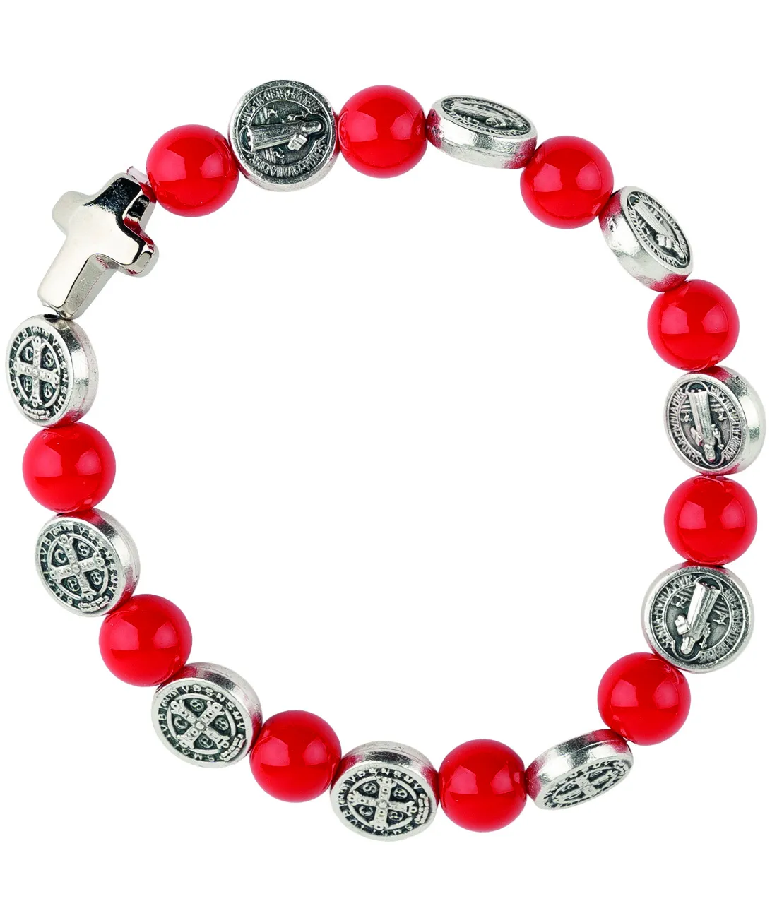 Růženec desátek jako náramek se stříbrnými medailemi sv. otce Benedikta. .