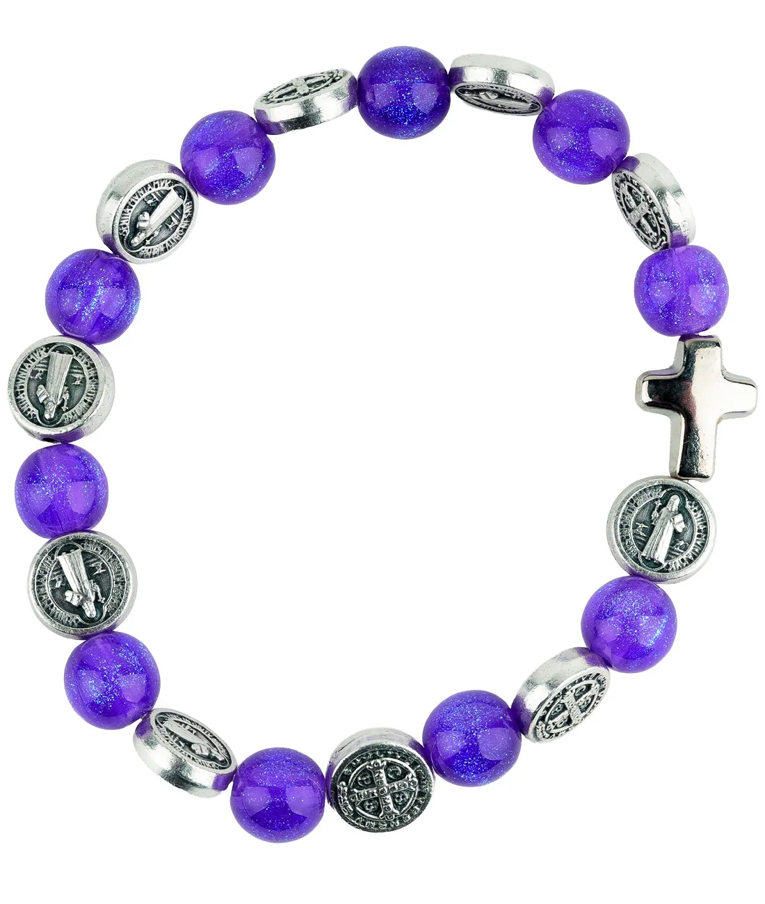 Růženec desátek jako náramek se stříbrnými medailemi sv. otce Benedikta. .