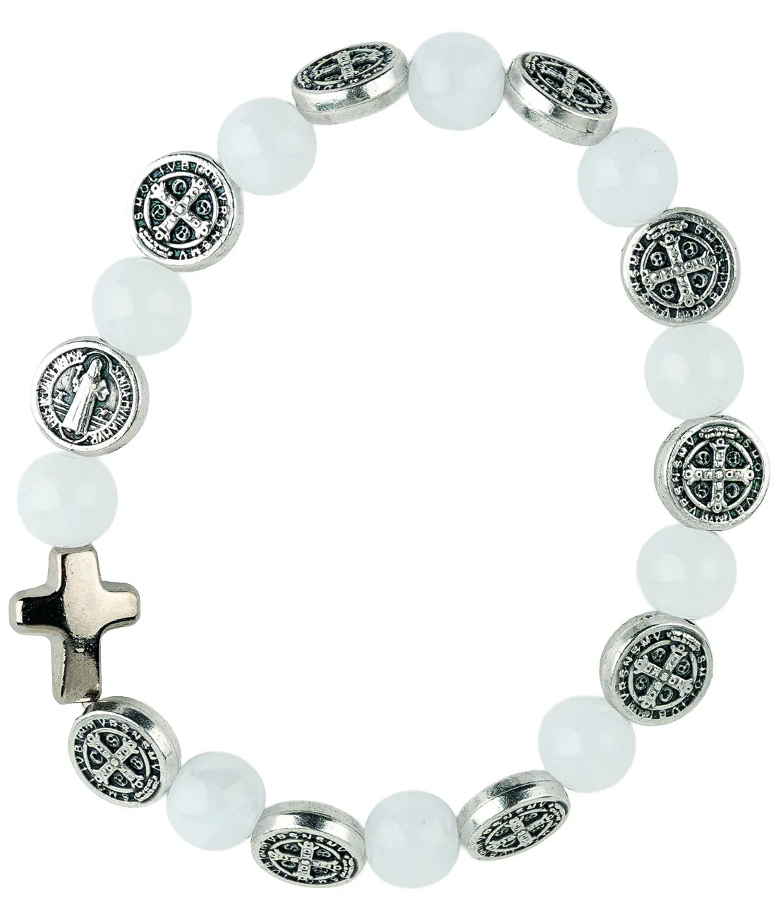 Růženec desátek jako náramek se stříbrnými medailemi sv. otce Benedikta. .