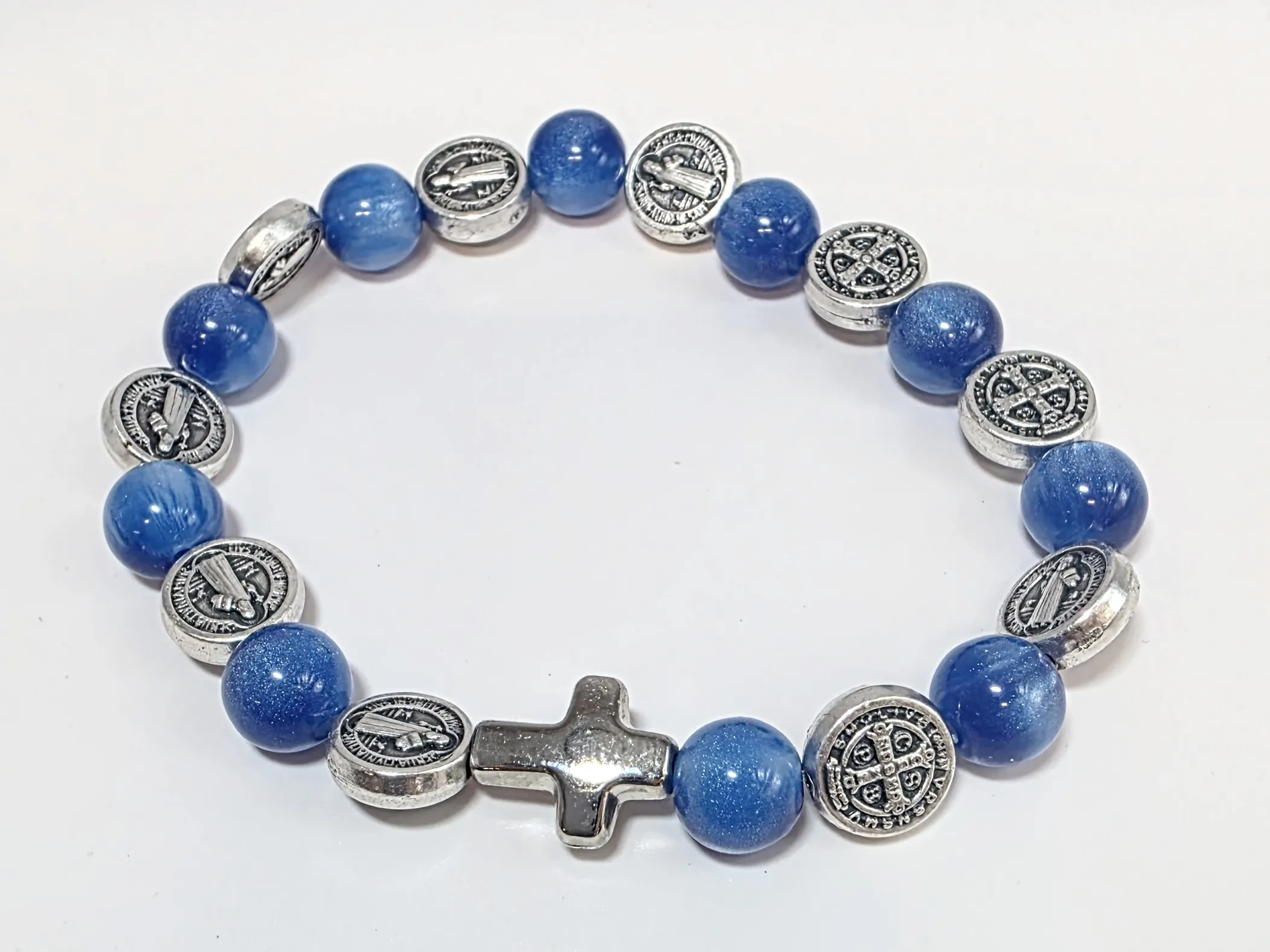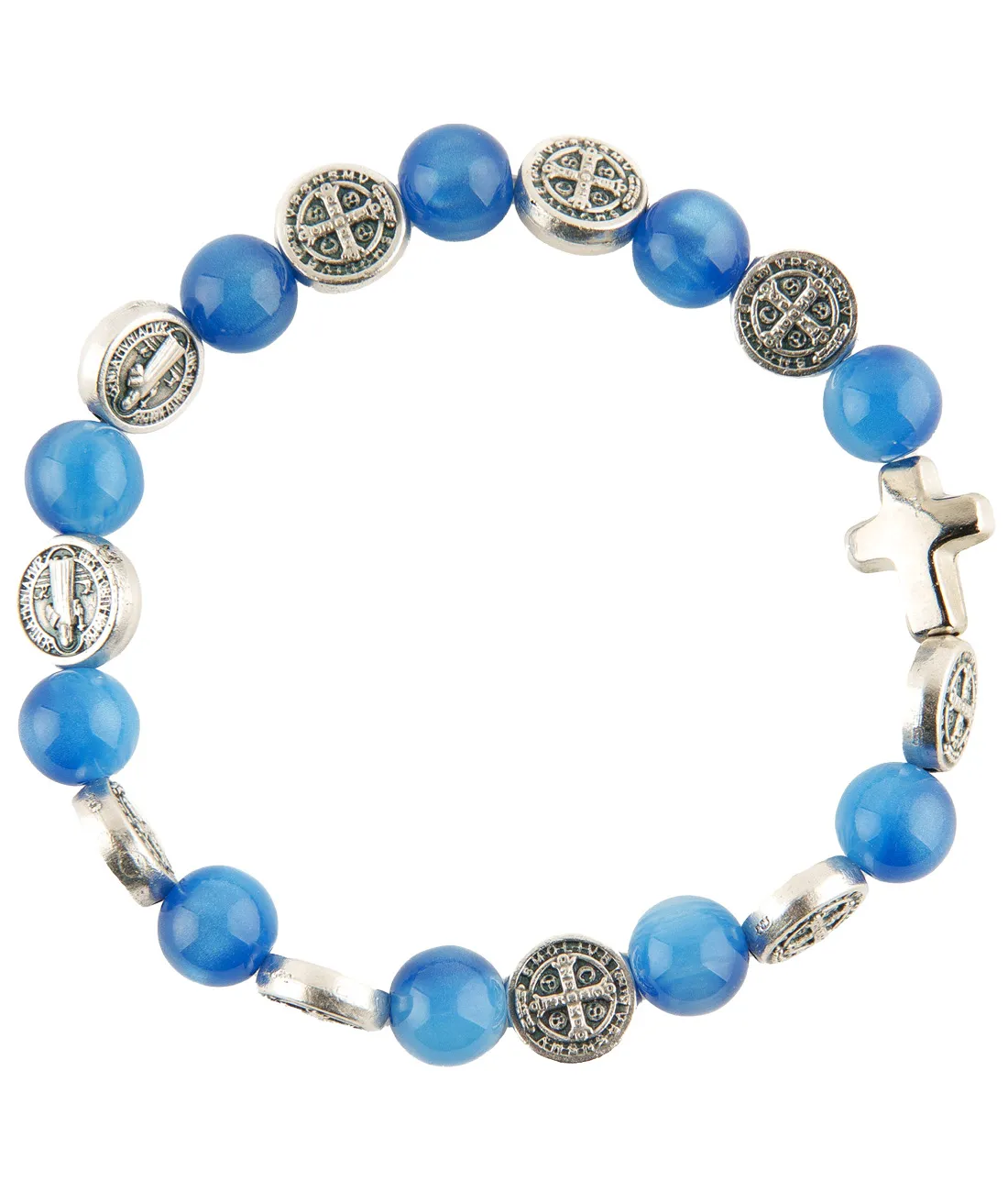 Růženec desátek jako náramek se stříbrnými medailemi sv. otce Benedikta. .