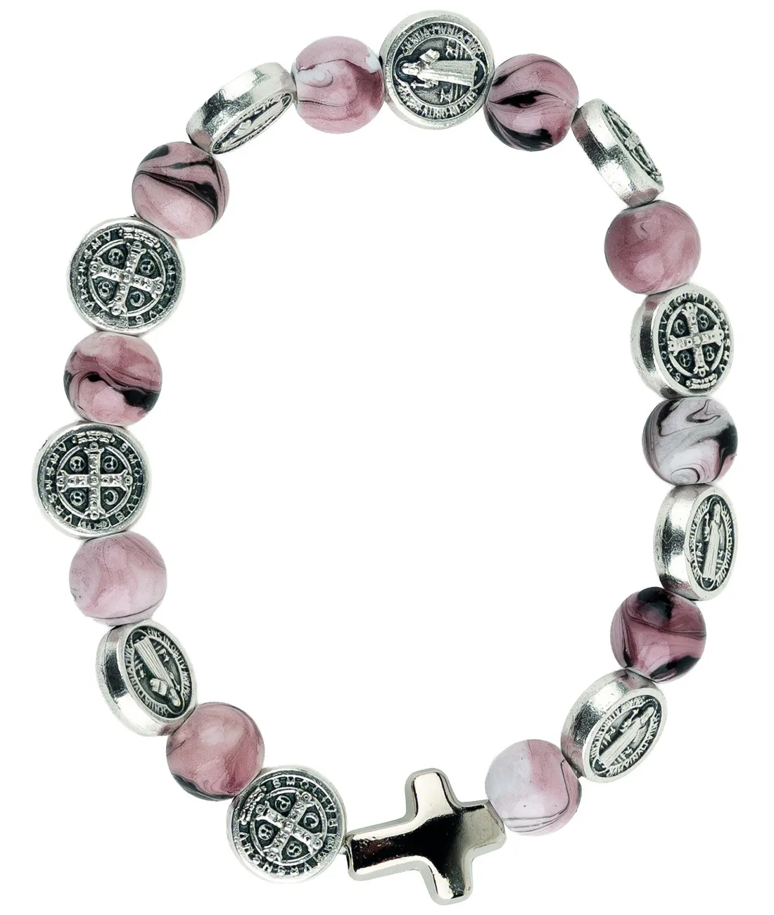 Růženec desátek jako náramek se stříbrnými medailemi sv. otce Benedikta. .