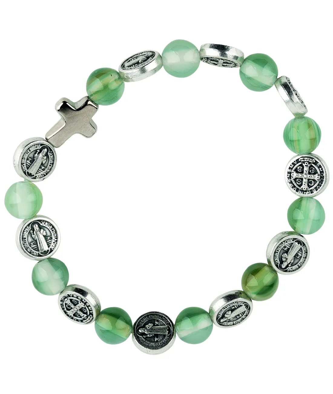 Růženec desátek jako náramek se stříbrnými medailemi sv. otce Benedikta. .
