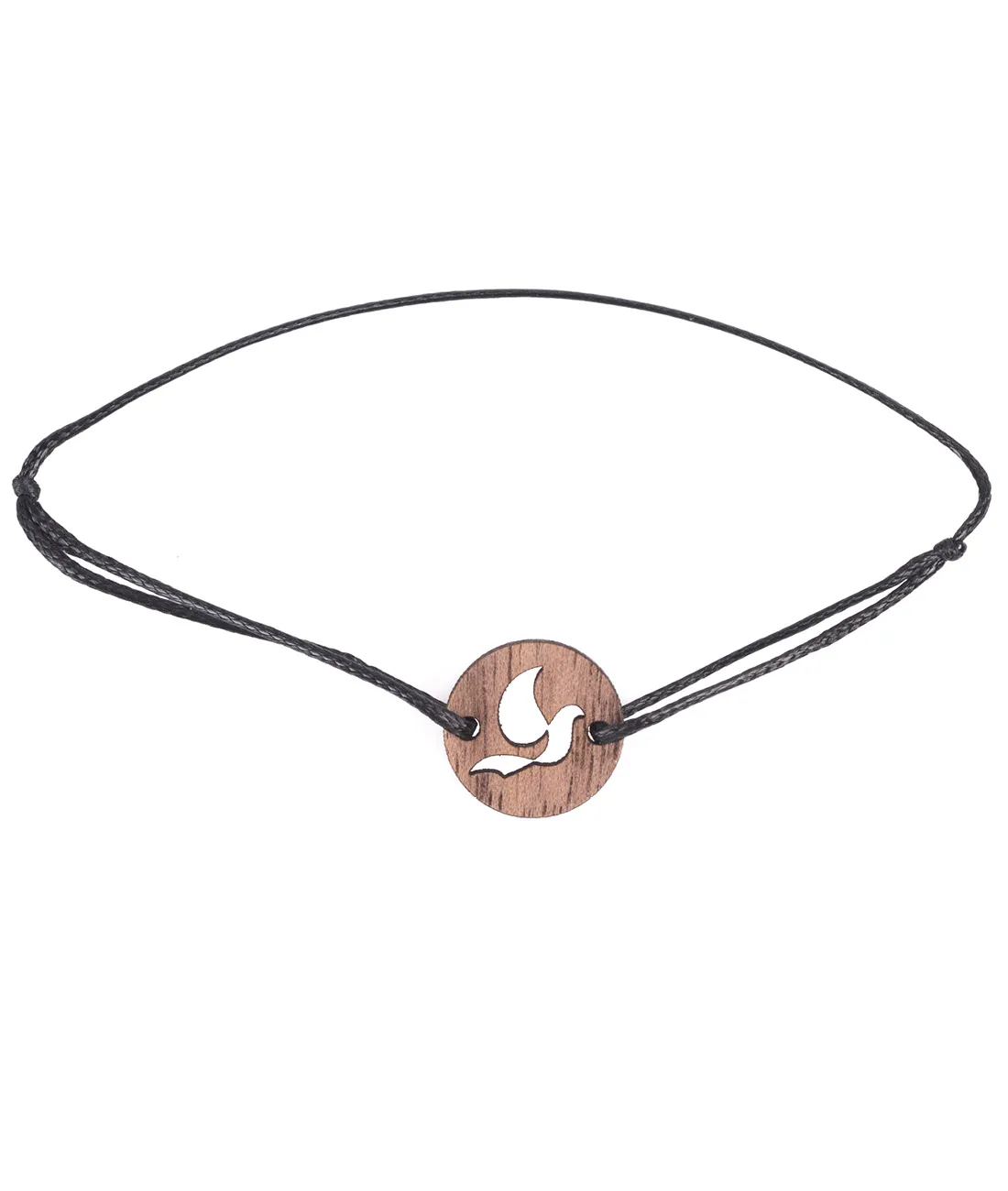 Náramek provázkový s dřevěnou medailkou s výřezem holubice
