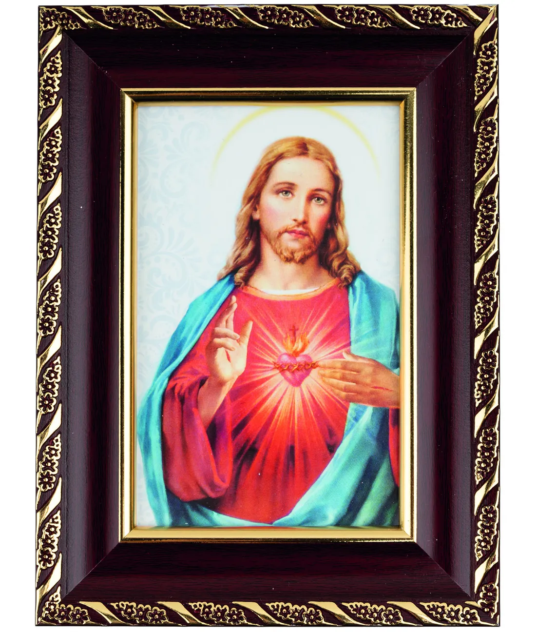 Obraz Svaté Rodiny ve zdobném plastovém rámečku.