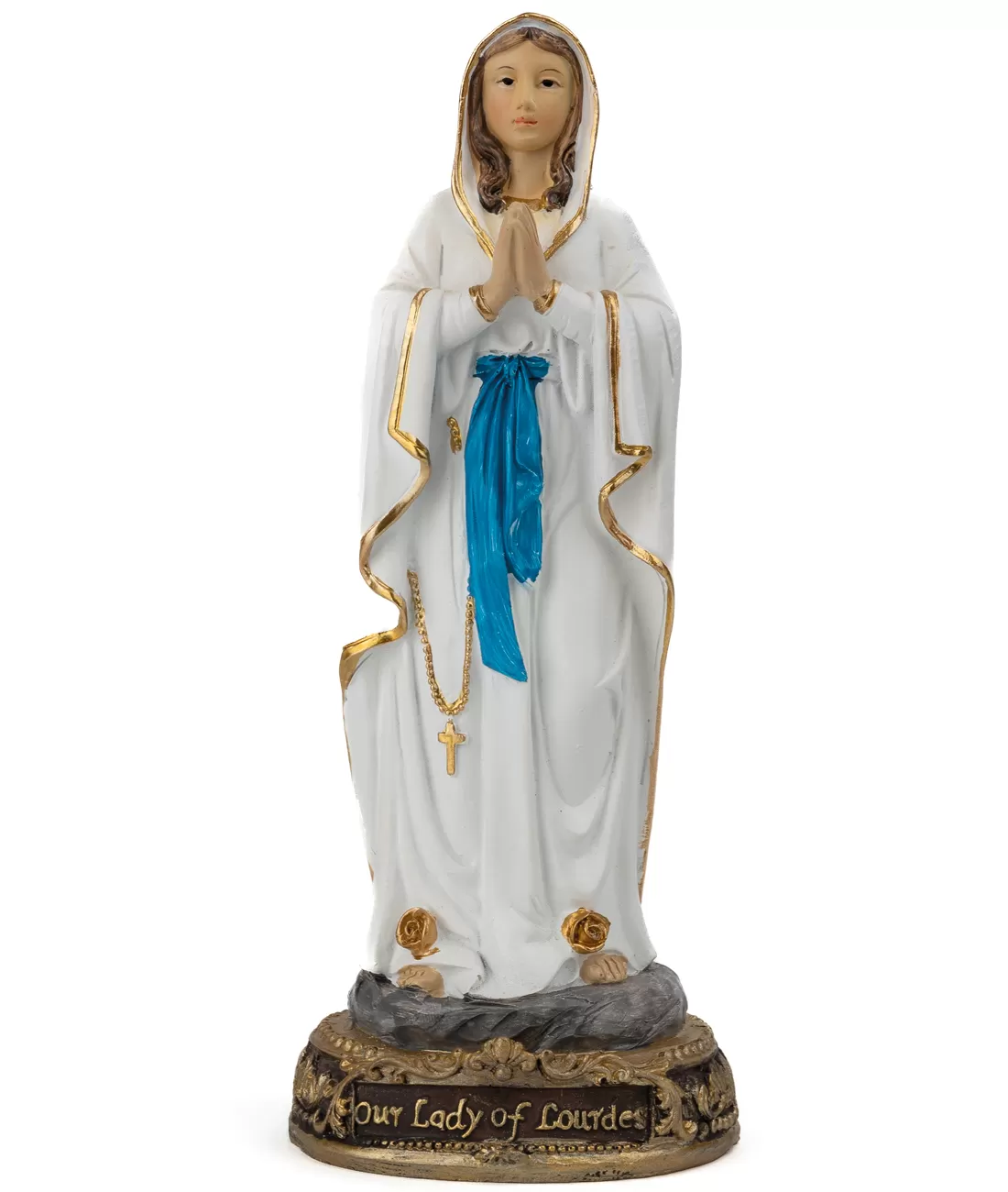 Soška Panny Marie Lurdské o velikosti 19 cm, jemně kolorovaná.