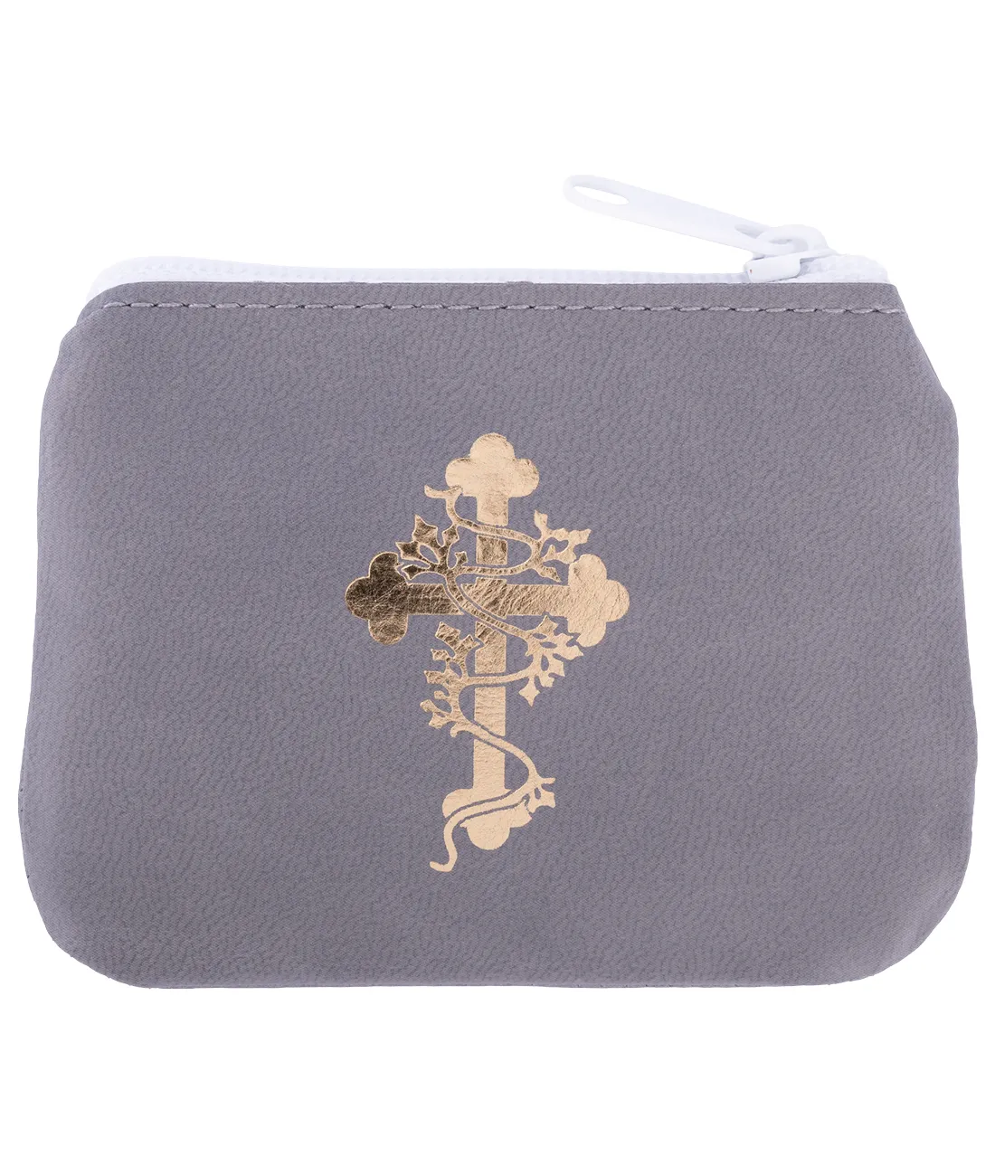 Šedé koženkové pouzdro na růženec se zipem. Teď se vám již Váš oblíbený růženec neztratí ani nepoškodí. Vhodné též jako dárek.