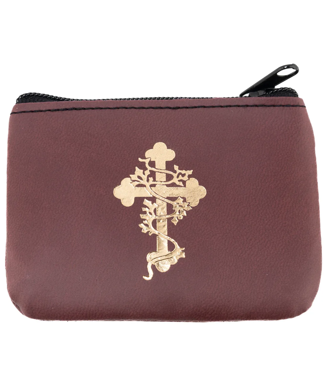 Tmavě červené koženkové pouzdro na růženec se zipem. Teď se vám již Váš oblíbený růženec neztratí ani nepoškodí. Vhodné též jako dárek.