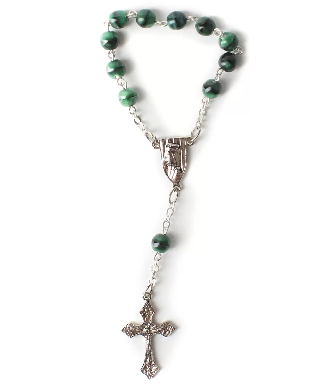 Malý růženec (desátek) z 11 kulatých perlí ve velikosti 6 mm a barvě zelený měsíční svit.