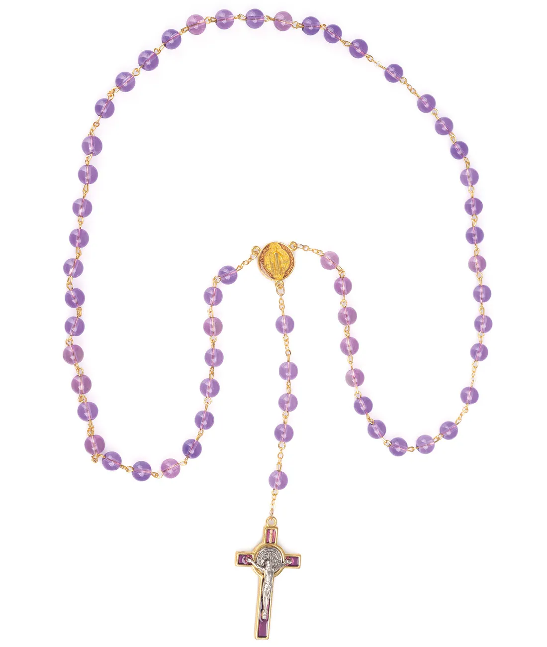 Růženec skleněné korálky + kříž a medailka sv. Benedikta