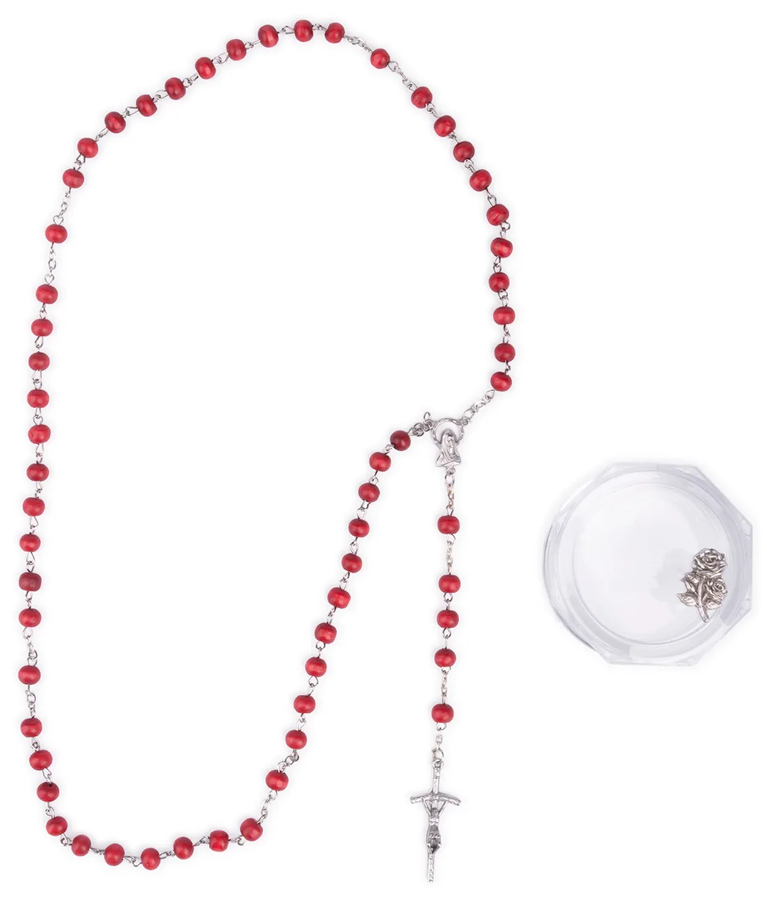 Růženec v kulaté dárkové krabičce ovoněný vůní růže. Označení modlitby růžence je z latinského rosarium, „Zahrada růží“.