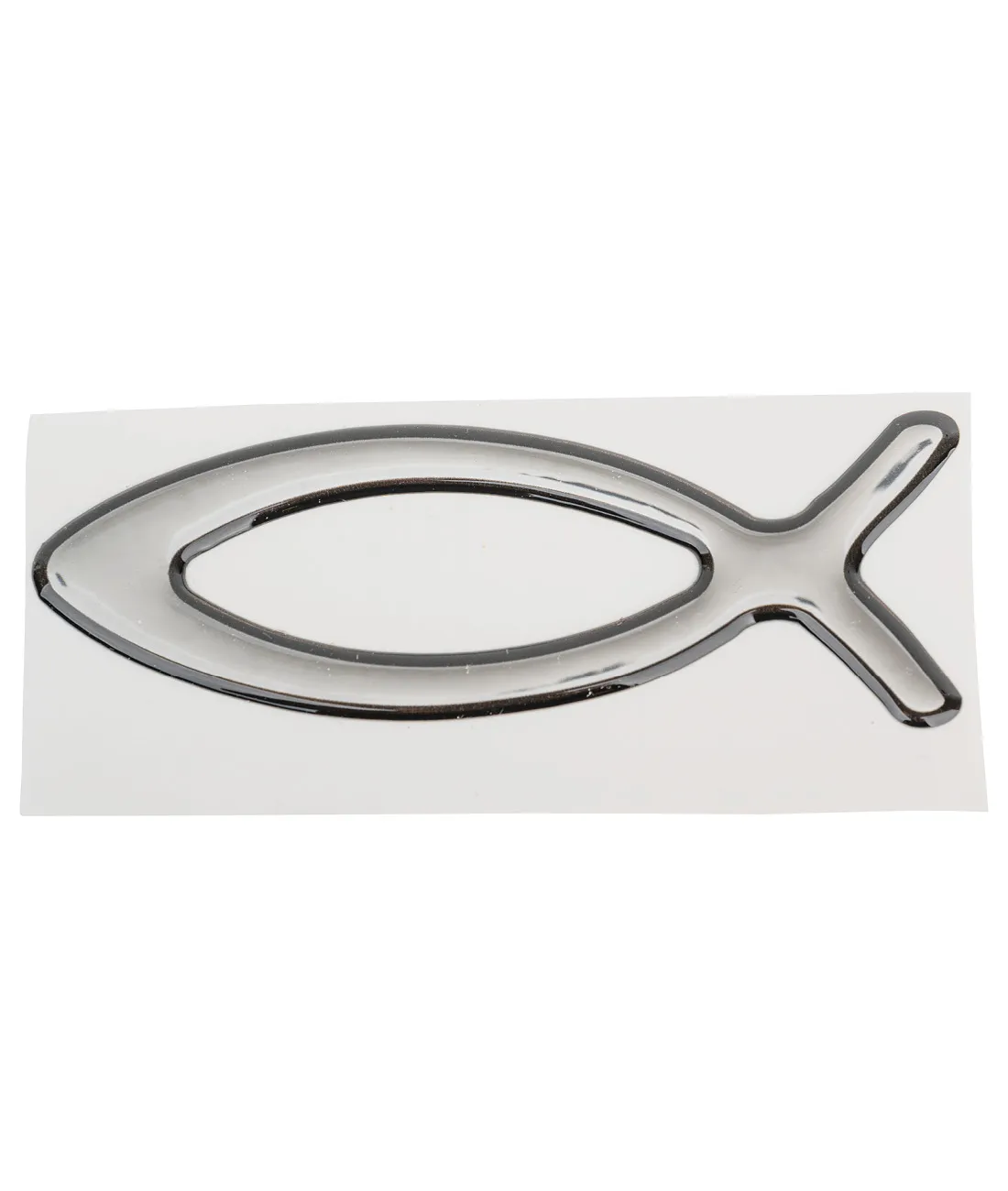 Plastová samolepka s křesťanským symbolem ryby je určená např. pro nalepení na automobil. Velikost 8,5 x 3 cm.