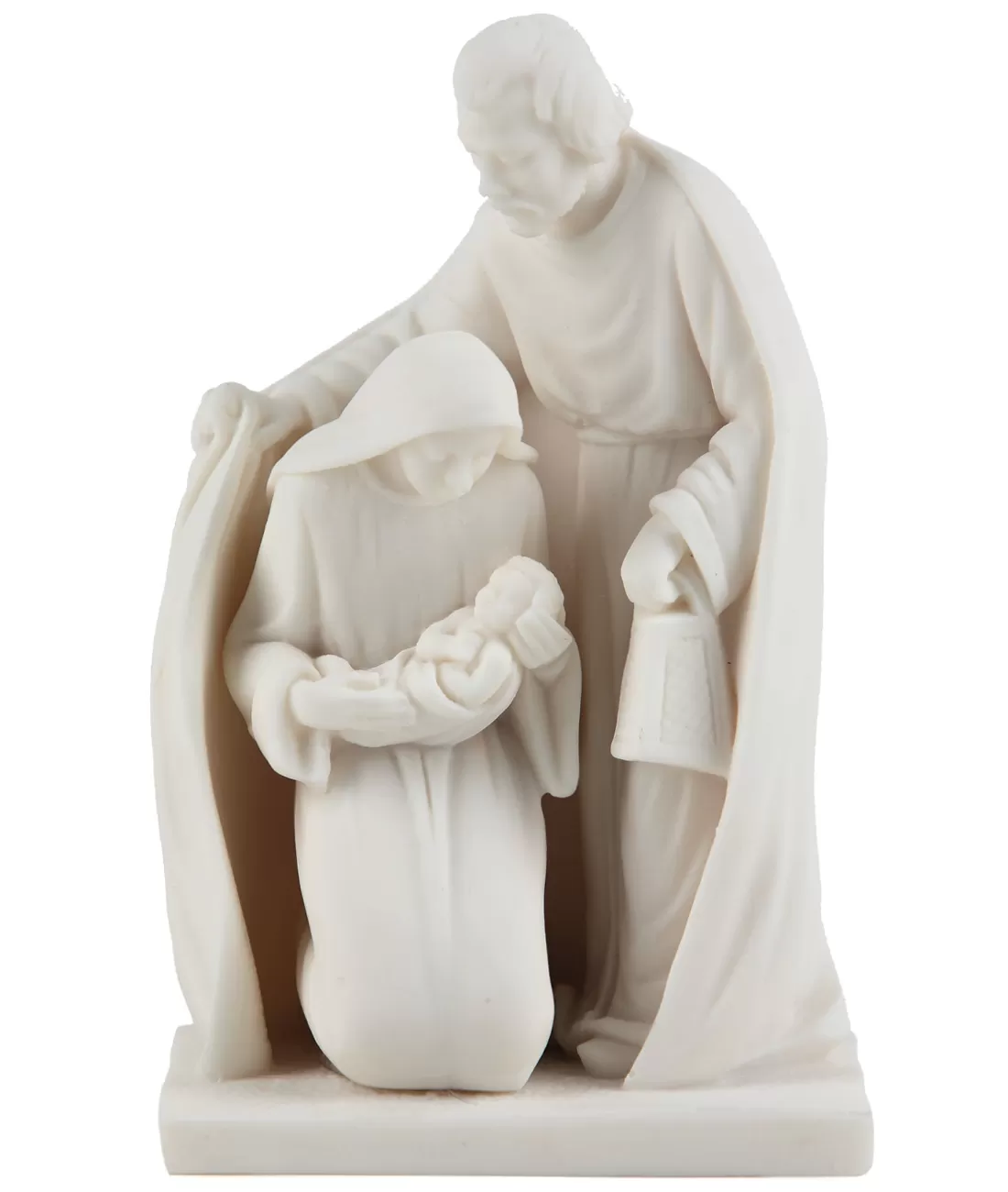 Úchvatná, jednoduchá a moderní plastika Svaté rodiny vyrobená z čistého bílého alabastru, vysoká 12 cm. Na vánoční stůl či poličku. Krásný dárek!