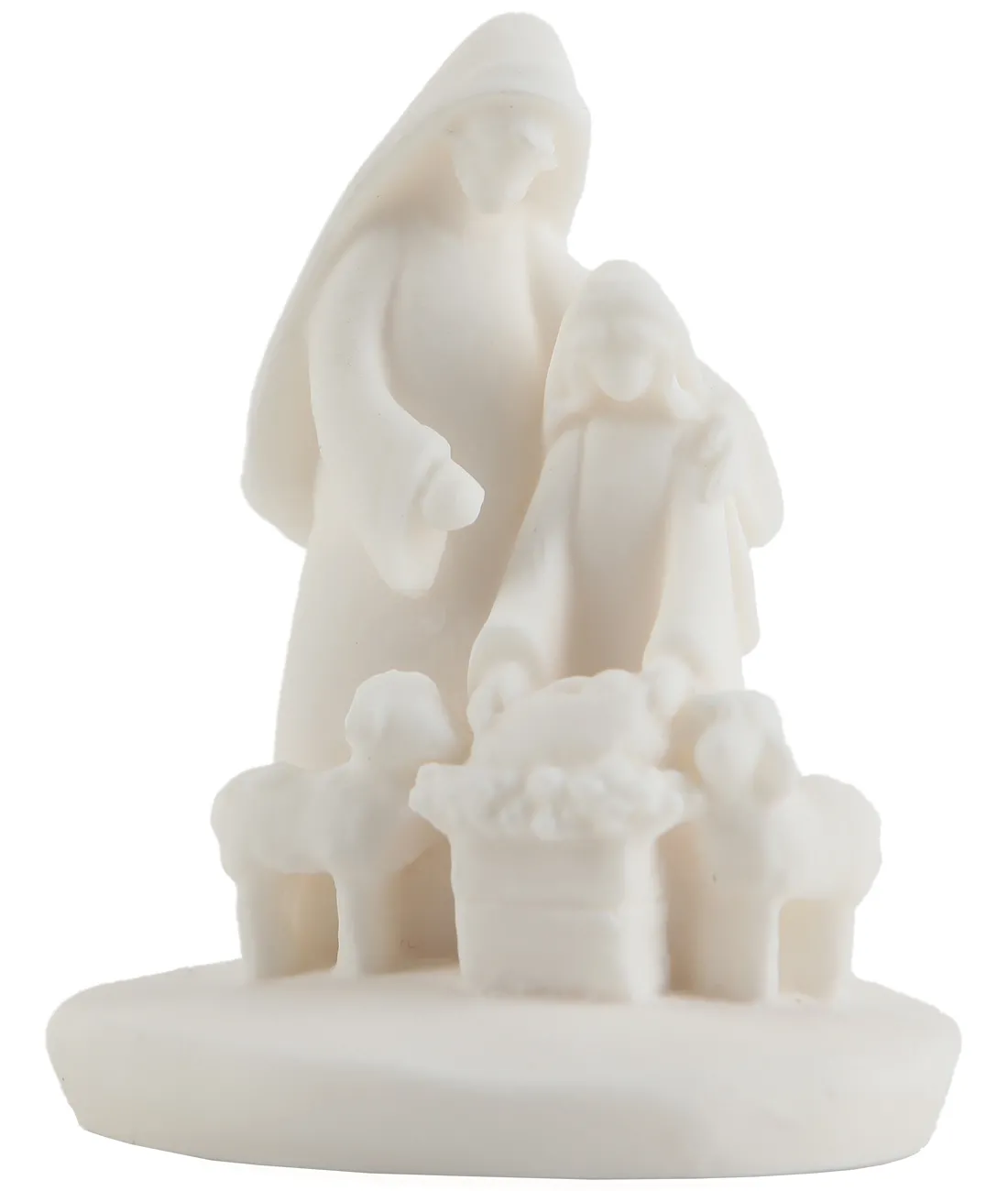 Drobná soška Panny Marie, Josefa a Ježíška vyrobená z bílého alabastru vysoká 6,5 cm.