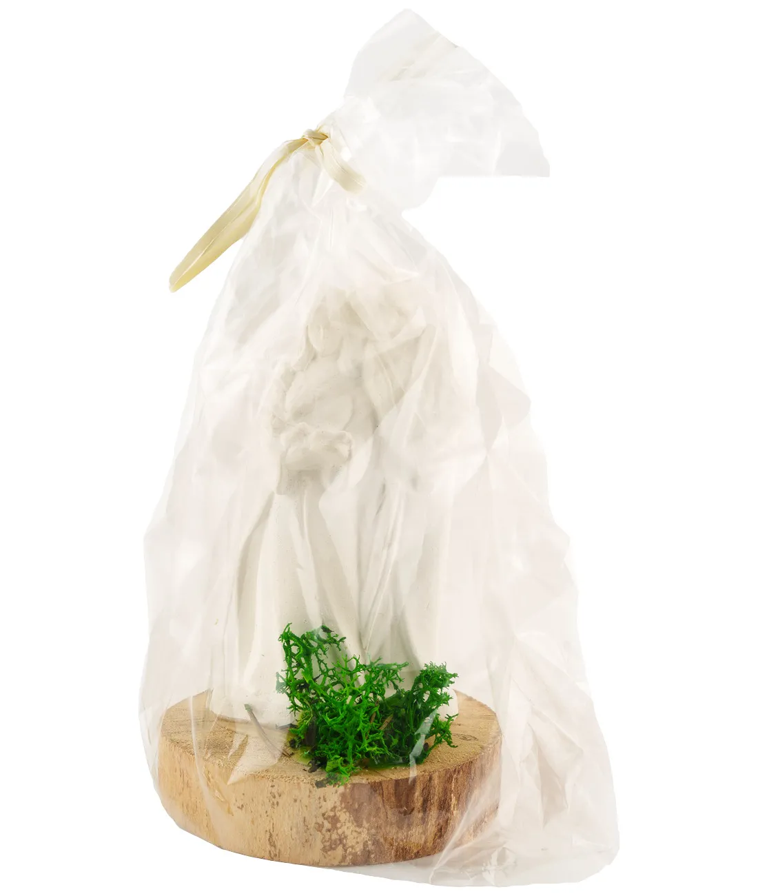 Soška Panny Marie a Josefa s Ježíškem z bílého alabastru o velikosti 11,5 cm na dřevěném podstavci.