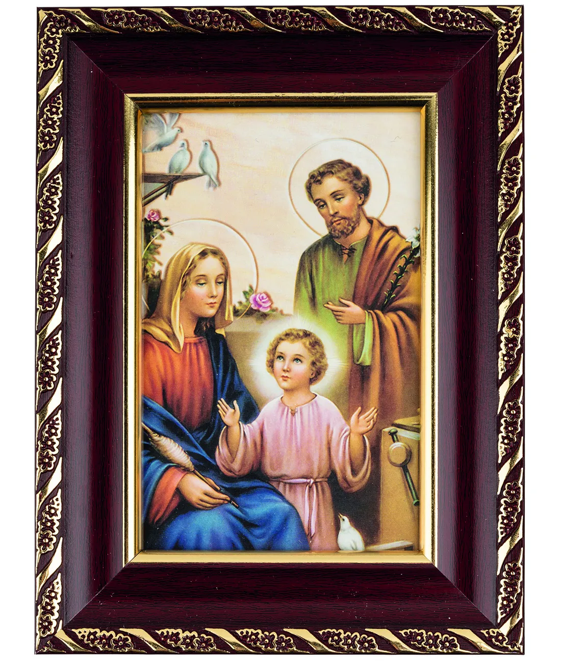 Obraz Svaté Rodiny ve zdobném plastovém rámečku.