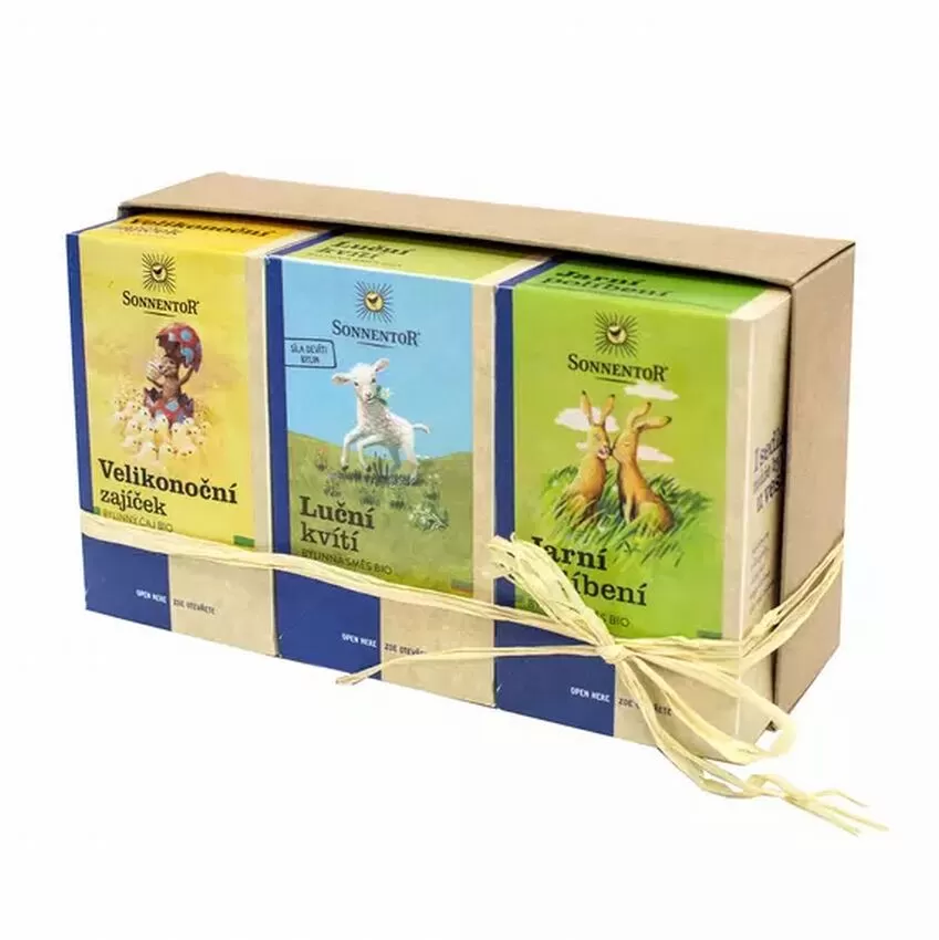 Velikonoční zajíček bio (bylinný čaj) - verbena citronová bio, máta okrouhlolistá bio, ostružina list bio, kopřiva bio, měsíček květ bio, chrpa květ bio, sléz květ bio;
