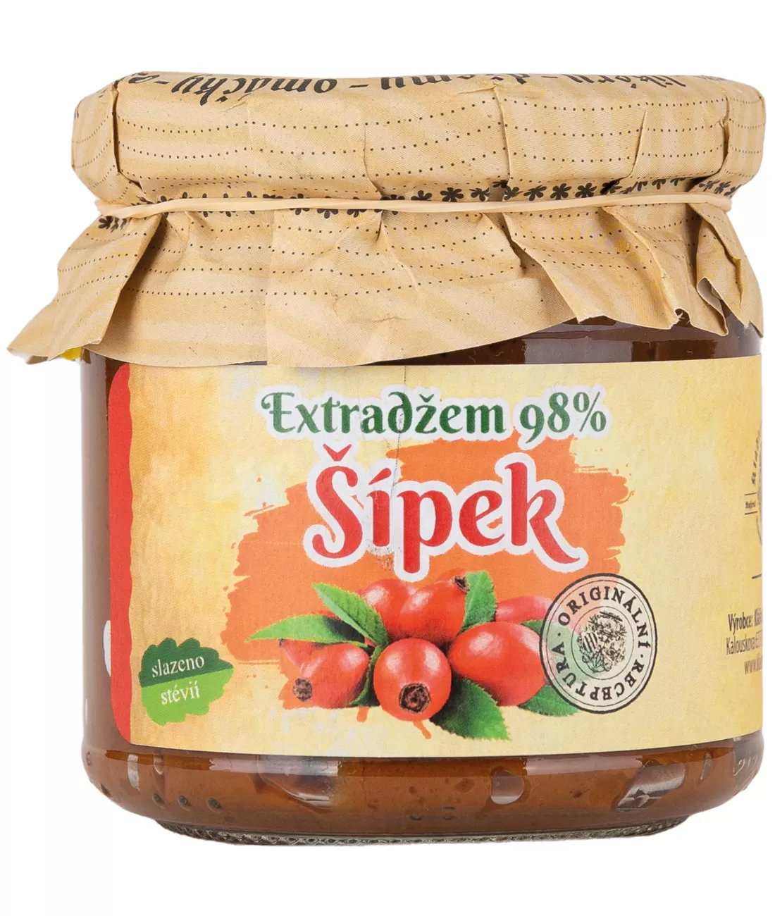 Extradžem z šípku lze použít na různé pečivo, slazení čaje nebo jako ochucení jogurtů a různých kaší. Šípková ovocná pomazánka je vynikající také pro výrobu šípkové omáčky nebo jako doplněk k sýrům. 98%, slazeno stévií, 180g