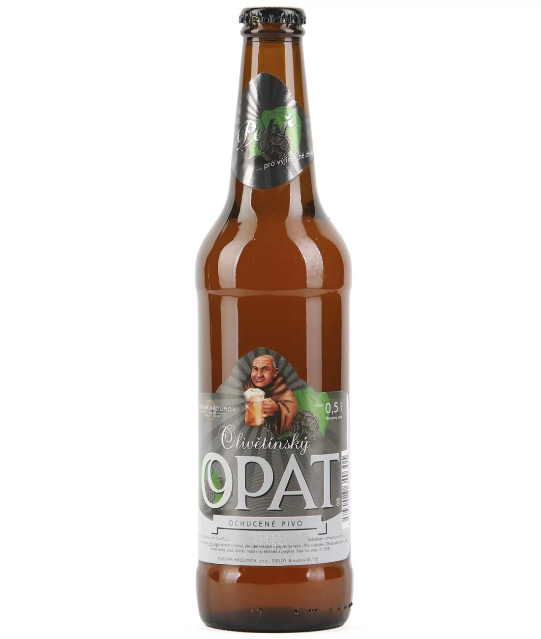 pitná voda, ječný slad, upravený chmel, přírodní výtažek z pepře černého obsah alkoholu 4,8% vol., pasterováno