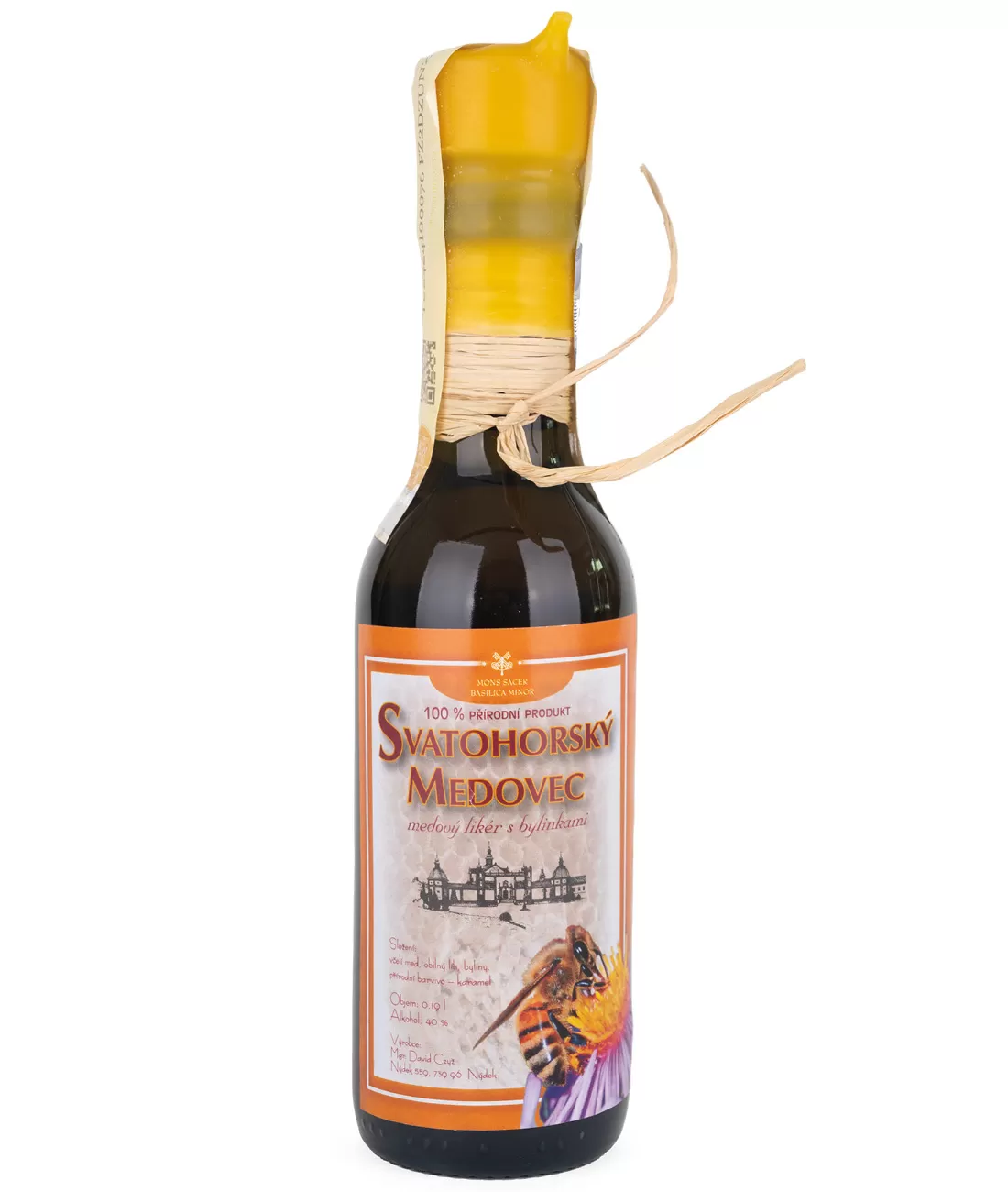 Svatohorský medovec je medový likér s bylinkami. Obsah 0,19 l, alkohol 40%. 100% přírodní produkt.