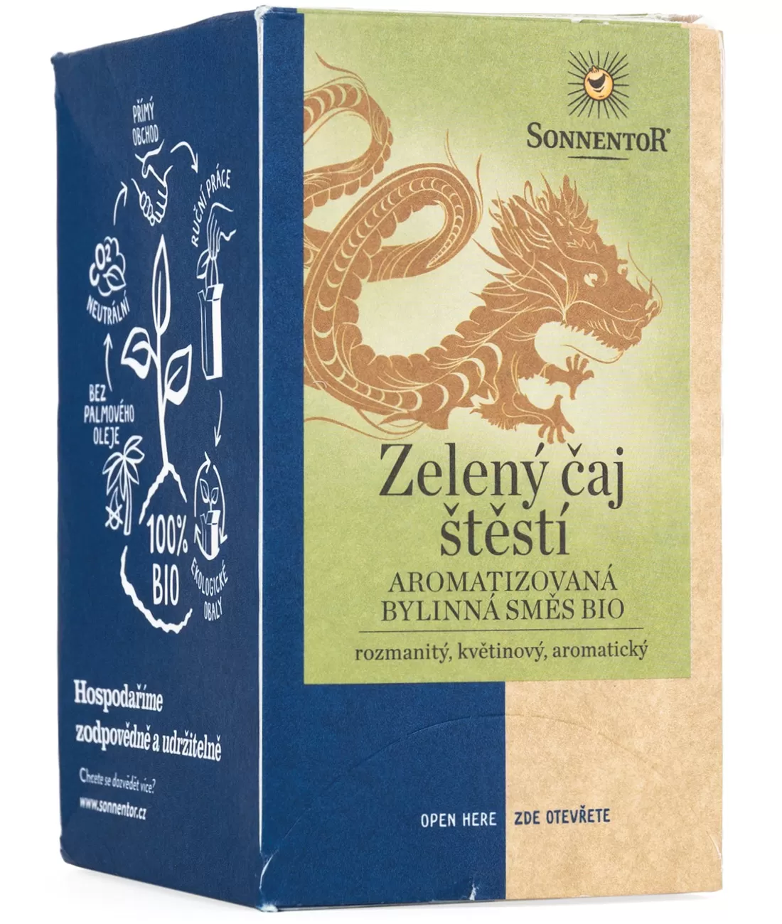 Jedna z nejvzácnějších směsí, ve které je chuť zeleného čaje sladěna s vybraným kořením a bylinami. Zelený čaj pochází z Číny a má tisíc let starou tradici. Zelený i černý čaj pochází z jedné rostliny zvané Camelia Sinensis. K výrobě zeleného čaje se ovšem lístky paří nebo praží v pánvi, ale nefermentují se, jako je tomu u černého čaje. Porcovaný, dvoukomorový, 19,8 g.