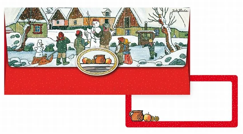 Dárková obálka na peníze s vánočními motivy Josefa Lady a uzavíratelnou klopou. Darujte svým blízkým dárek k Vánocům v podobě obálky na peníze. Do obálky lze vložit peníze nebo dárkový poukaz. Uvnitř je kartička bez textu, na kterou můžete napsat věnování.