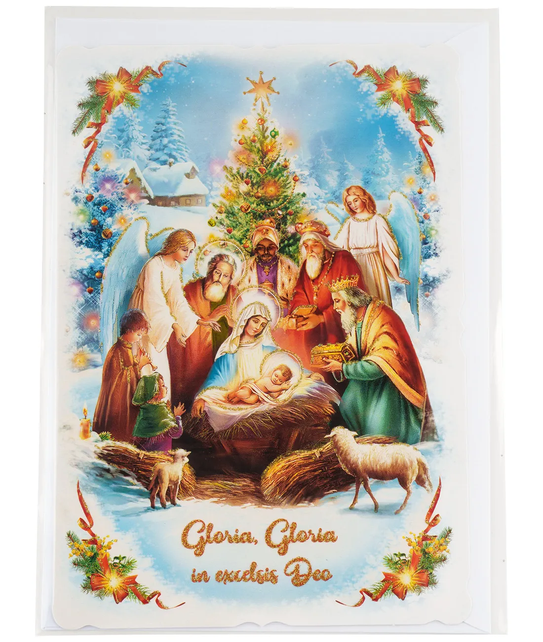 Přání vánoční - Svatá Rodina, brokát 16,5 x 11,5 cm