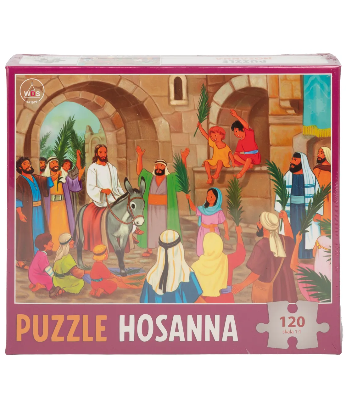 Křesťanské puzzle pro děti. Obsahuje 120 dílků a po složení vznikne obrázek o velikosti 30 x 42 cm.