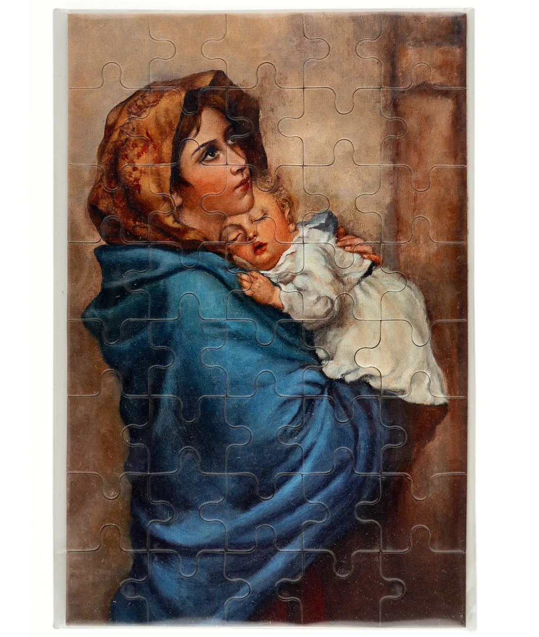 Jednoduchá skládačka ze 40 dílků s tradičním obrázkem o velikosti 20 x 13 cm.