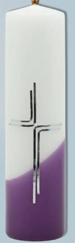 Svíce s reliéfem kříže stříbrné barvy o velikosti 6 x 22 cm. Svíčky jsou vyrobeny ze zdravotně nezávadného parafinu vysoké kvality. Dodává tradiční český výrobce. Oltářní svíce se umisťují na oltáře nebo v jejich blízkosti (např. na stojany) pro účely náboženských obřadů. Jejich užití a počet zapálených svící se řídí příslušnými předpisy.