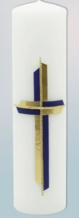 Svíce s reliéfem kříže zlatavé barvy o velikosti 6 x 22 cm. Svíčky jsou vyrobeny ze zdravotně nezávadného parafinu vysoké kvality. Dodává tradiční český výrobce. Oltářní svíce se umisťují na oltáře nebo v jejich blízkosti (např. na stojany) pro účely náboženských obřadů. Jejich užití a počet zapálených svící se řídí příslušnými předpisy.