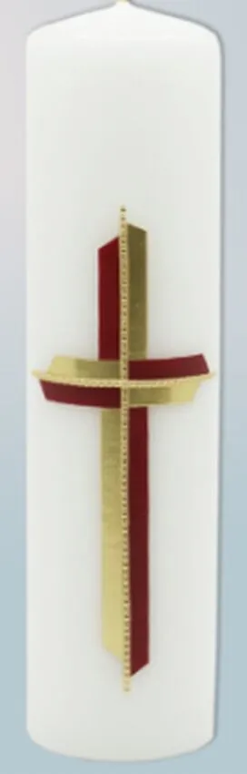 Svíce s reliéfem kříže zlatavé barvy o velikosti 6 x 22 cm. Svíčky jsou vyrobeny ze zdravotně nezávadného parafinu vysoké kvality. Dodává tradiční český výrobce. Oltářní svíce se umisťují na oltáře nebo v jejich blízkosti (např. na stojany) pro účely náboženských obřadů. Jejich užití a počet zapálených svící se řídí příslušnými předpisy.