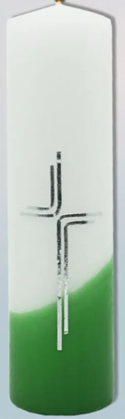 Svíce s reliéfem kříže stříbrné barvy o velikosti 6 x 22 cm. Svíčky jsou vyrobeny ze zdravotně nezávadného parafinu vysoké kvality. Dodává tradiční český výrobce. Oltářní svíce se umisťují na oltáře nebo v jejich blízkosti (např. na stojany) pro účely náboženských obřadů. Jejich užití a počet zapálených svící se řídí příslušnými předpisy.