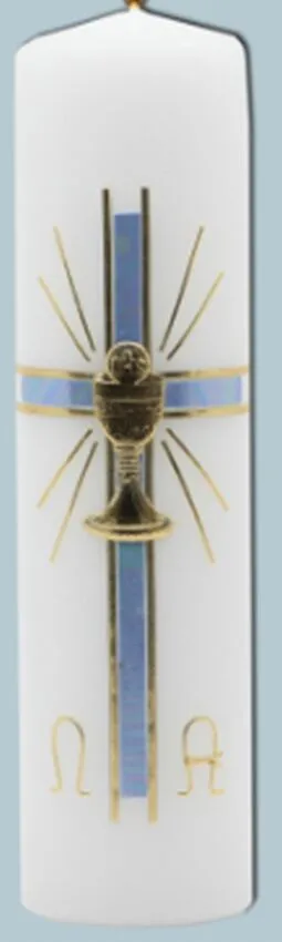 Svíce s reliéfem kříže a kalichem zlatavé barvy o velikosti 6 x 22 cm. Svíčky jsou vyrobeny ze zdravotně nezávadného parafinu vysoké kvality. Dodává tradiční český výrobce. Oltářní svíce se umisťují na oltáře nebo v jejich blízkosti (např. na stojany) pro účely náboženských obřadů. Jejich užití a počet zapálených svící se řídí příslušnými předpisy.