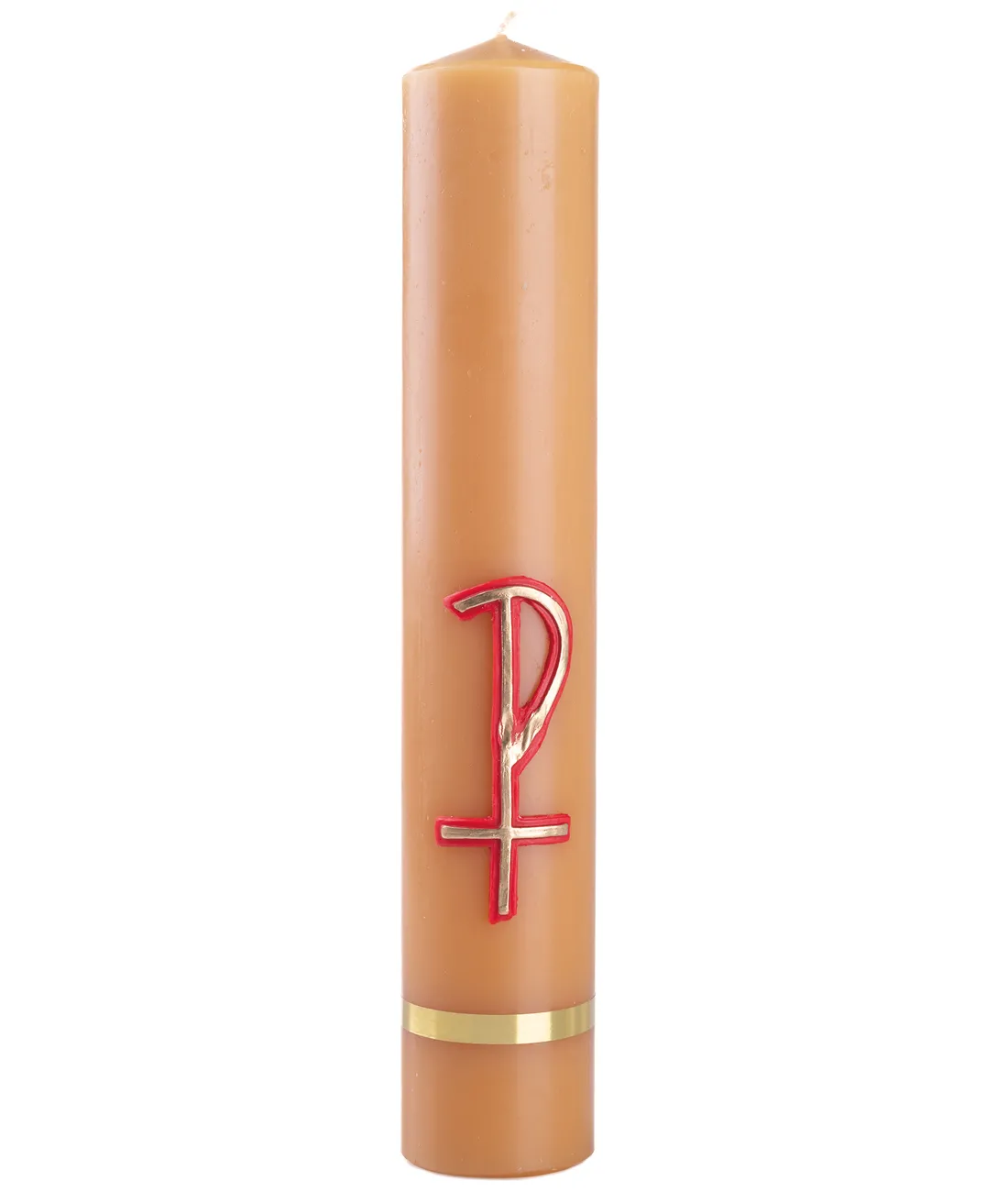 Svíce se včelím voskem a reliéfem PAX a páskem zlatavé barvy. Velikost svíce je 30 x 5,5 cm.