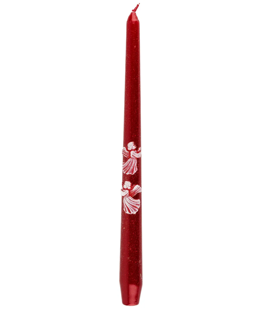 Vánoční svíce s reliéfem cherubínů, červená metal. Váha 75 g.
