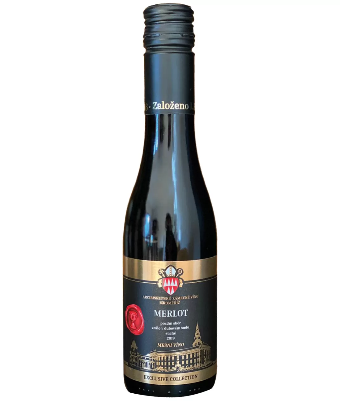Mešní víno v malé lahvi o objemu 0,25 l, s přívlastkem pozdní sběr, suché, červené. Řada tichých vín Exclusive Collection nabízí ta nejkvalitnější mešní vína s přívlastkem. Mešní vína nejsou určena pouze pro účely náboženských obřadů, ale i k běžné konzumaci. Kvůli přísným pravidlům pro jeho výrobu – hrozny nejsou při pěstování a v jakékoli fázi výroby chemicky ošetřovány, při výrobě mešního vína nesmí být užito žádných přídavných látek, jako jsou barviva, aromata či cukry. Mešní víno je ted…y produktem ekologického vinohradnictví a vždy jde o víno přívlastkové. Tradice výroby mešního vína v Kroměříži sahá až do doby císaře Karla Iv.
